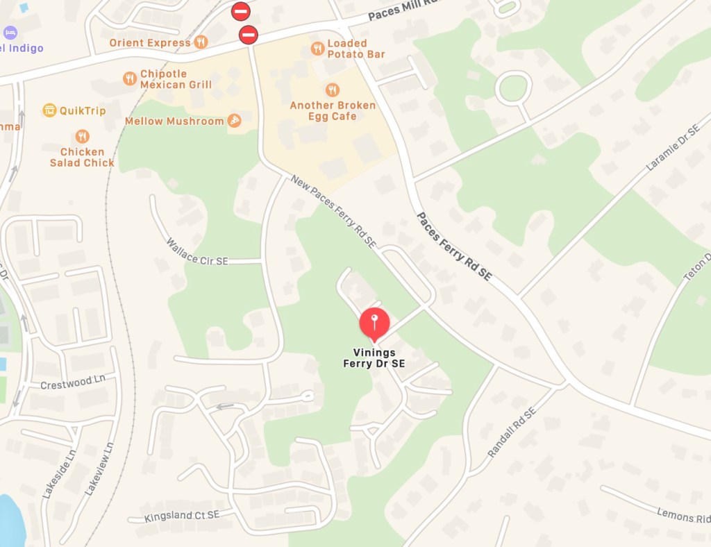 Vinings, Atlanta, GA 30339. Cobb County. Paces Ferry Rd./Vinings Ferry Rd. —Directions: I-285 to Paces Ferry Road exit. Head inside the Perimeter and turn right on New Paces Ferry Road. Turn Right into the community.